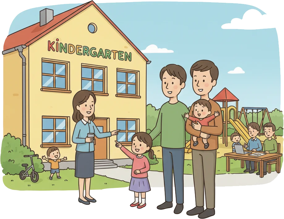 Public kindergartens in particular adjust care models (half-day instead of part-time) and expectations when a parent stays at home, as they consider childcare primarily as support for working parents. This becomes noticeable during enrollment (almost only working parents get places), during waves of illness, and during holidays (parents are expected to keep children at home when staff is short).