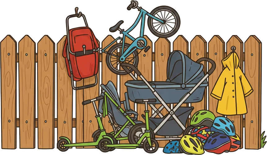 An often underestimated point: safe and sufficiently large parking spaces for strollers, scooters, and bicycles. In some facilities, strollers even have to be folded and hung up. When a buggy and a bike are forced to share a single hook, it quickly becomes clear how valuable enough storage space really is.